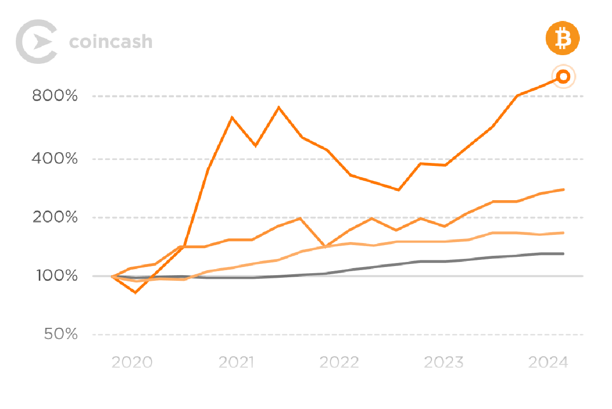 Since 2009, Bitcoin has risen by more than 15,000%. In the last 5 years it grew by 870%, outperforming all traditional investments.